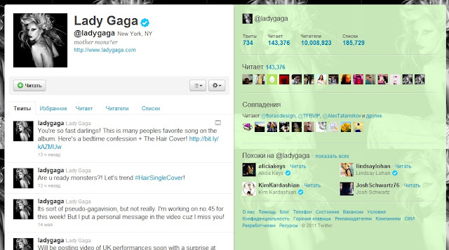 Фолловьте известных твиттерян-миллионников. Lady Gaga, Eminem, Justin