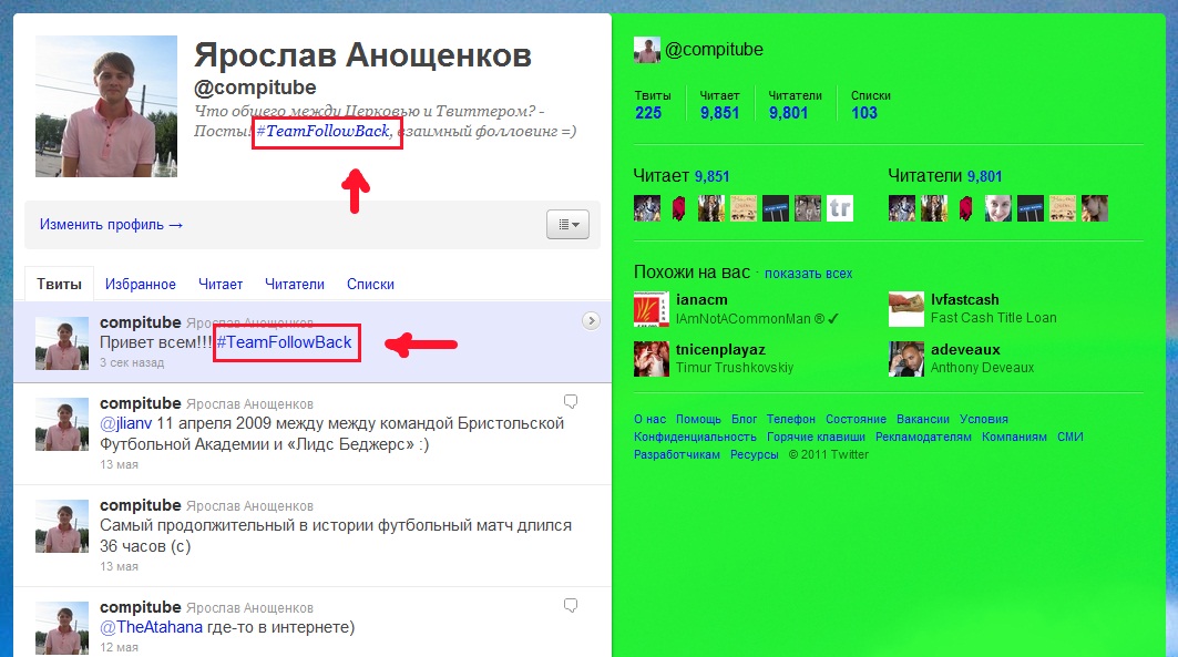 читателей/фолловеров (читаем фанатов) каждый раз. И Вас будут фолловить. ![]() Но слишком увлекаться этим не стоит. Твиттер