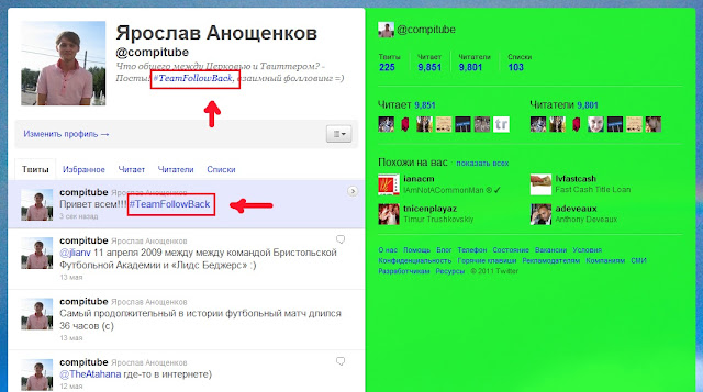 твиттере. Тогда Вы будете рекомендованы твиттером на его сайте для
